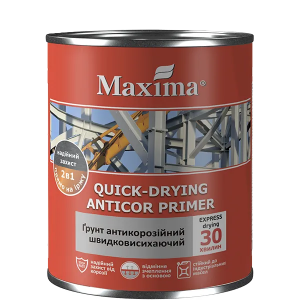 Грунт антикорозійний швидкосохнучий Maxima — однокомпонентна захисна система по металу, призначена для оперативного проміжного і базового захисту сталевих і чавунних поверхонь перед нанесенням фінішних лакофарбових покриттів. Продукт поєднує високу корозійну стійкість, швидке висихання і хорошу адгезію до підготовленої поверхні, що прискорює цикл робіт на об’єкті.